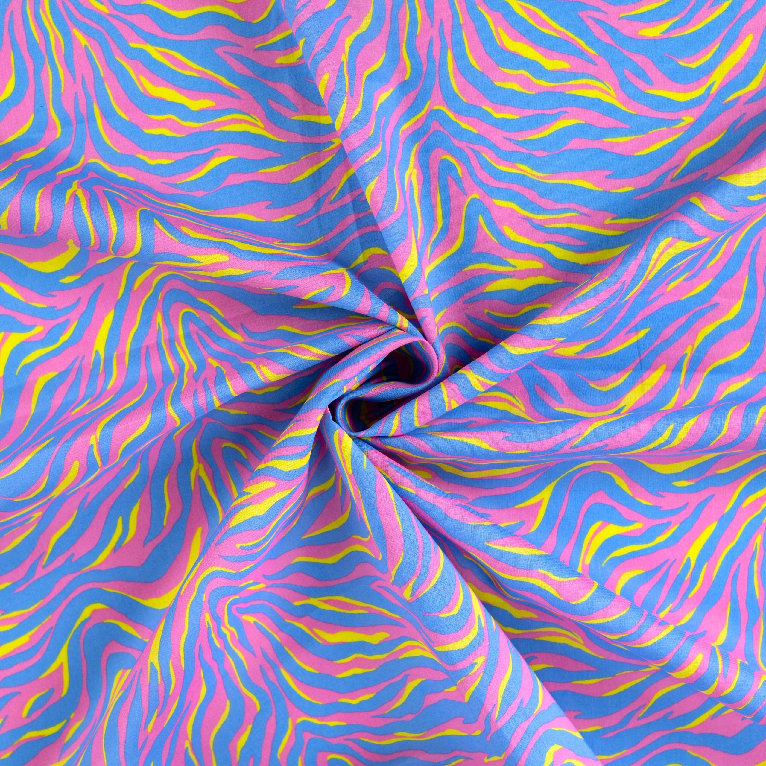 Cooler Druck auf leichter Baumwolle. Ideal für Kleider, Blusen, Hosen, Röcke und Kinderkleidung. Gut geeignet auch für Dekor, wie Bettwäsche, Buchhüllen, Leseknochen etc.