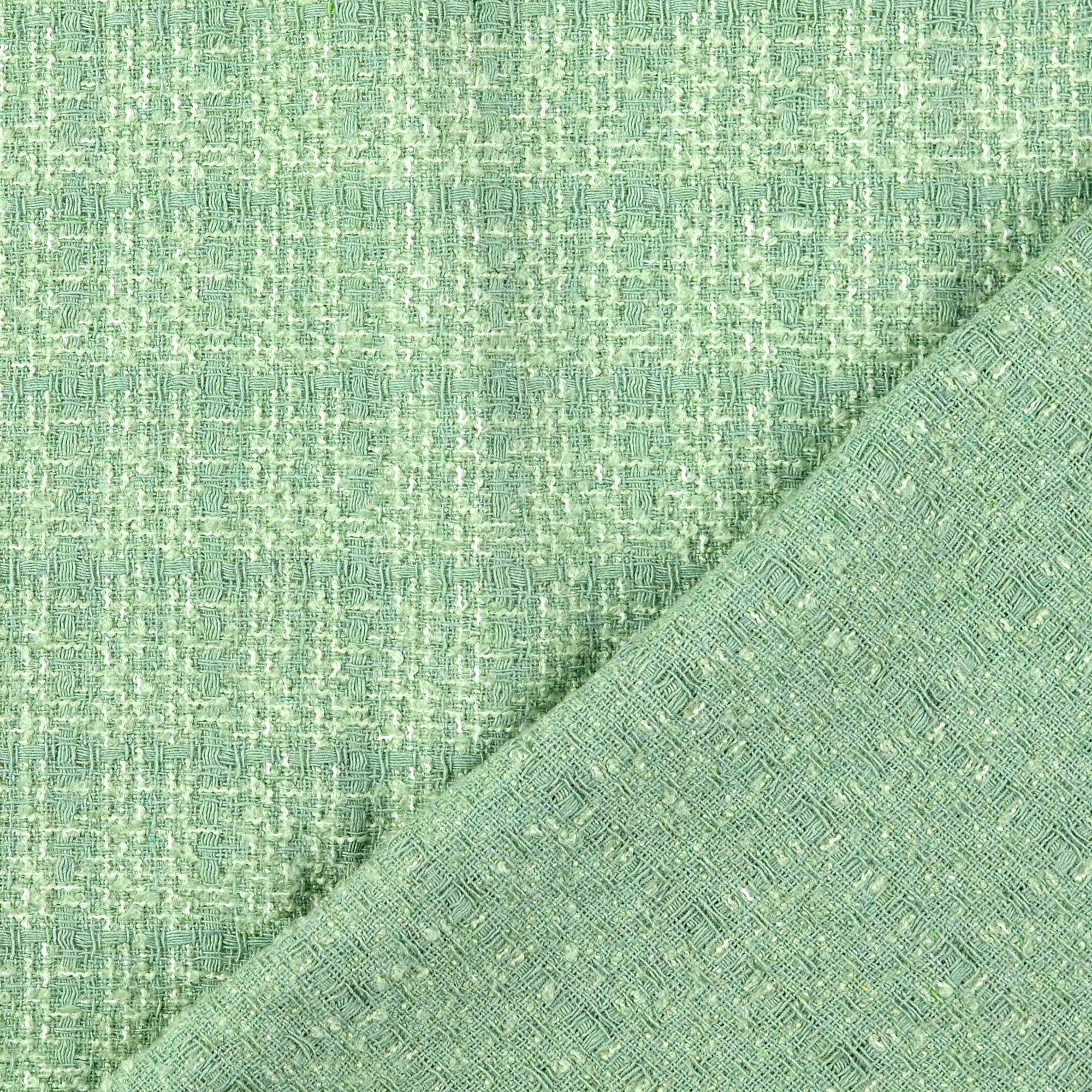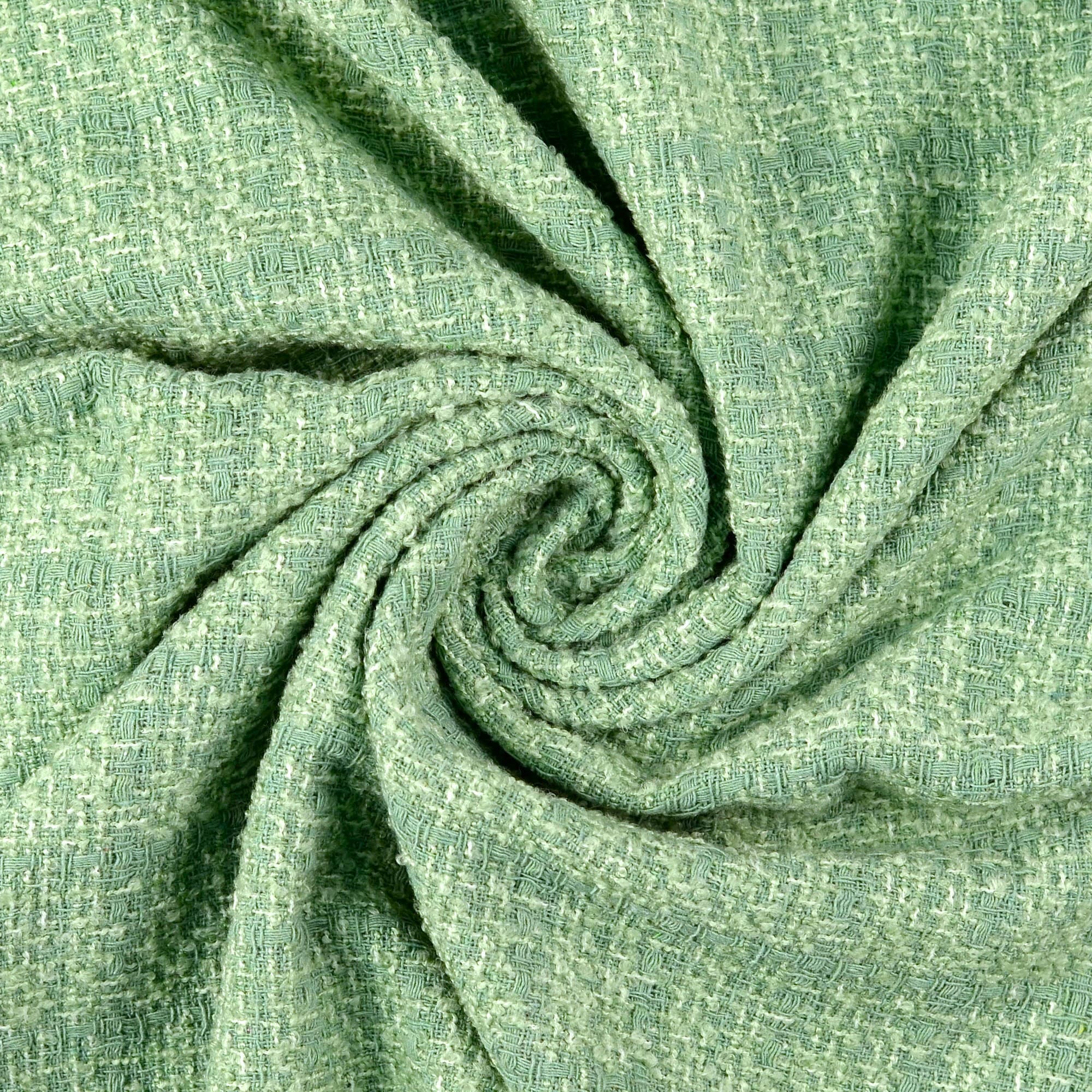 Modischer Bouclé in Grüntönen. Perfekt für Jacken im Chanel-Stil, Röcke und Kostüme.
