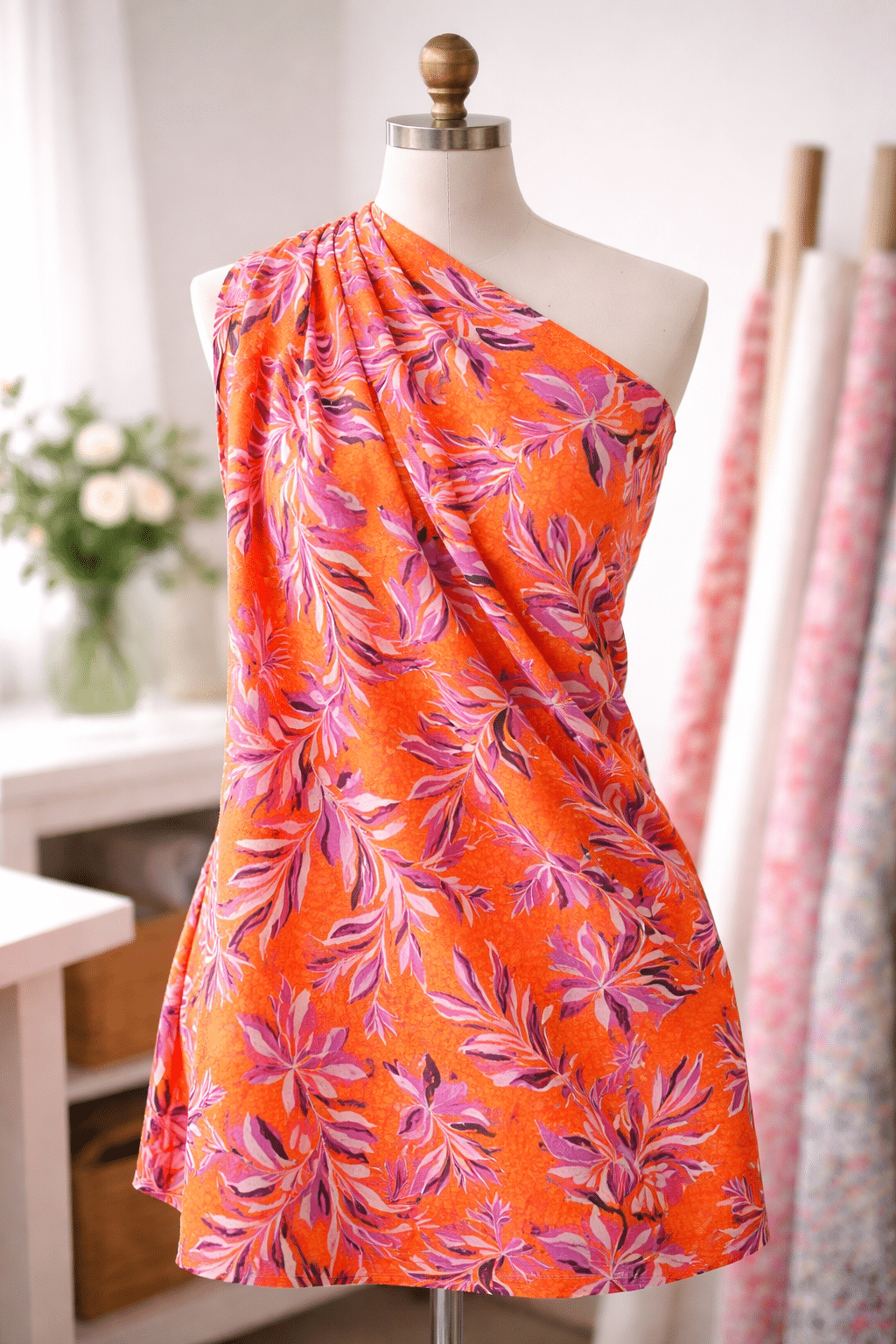 Sommerlicher Digitaldruck auf leicht strechiger Viskose. Perfekt für Kleider, Röcke, Blusen und luftige Hosen.
