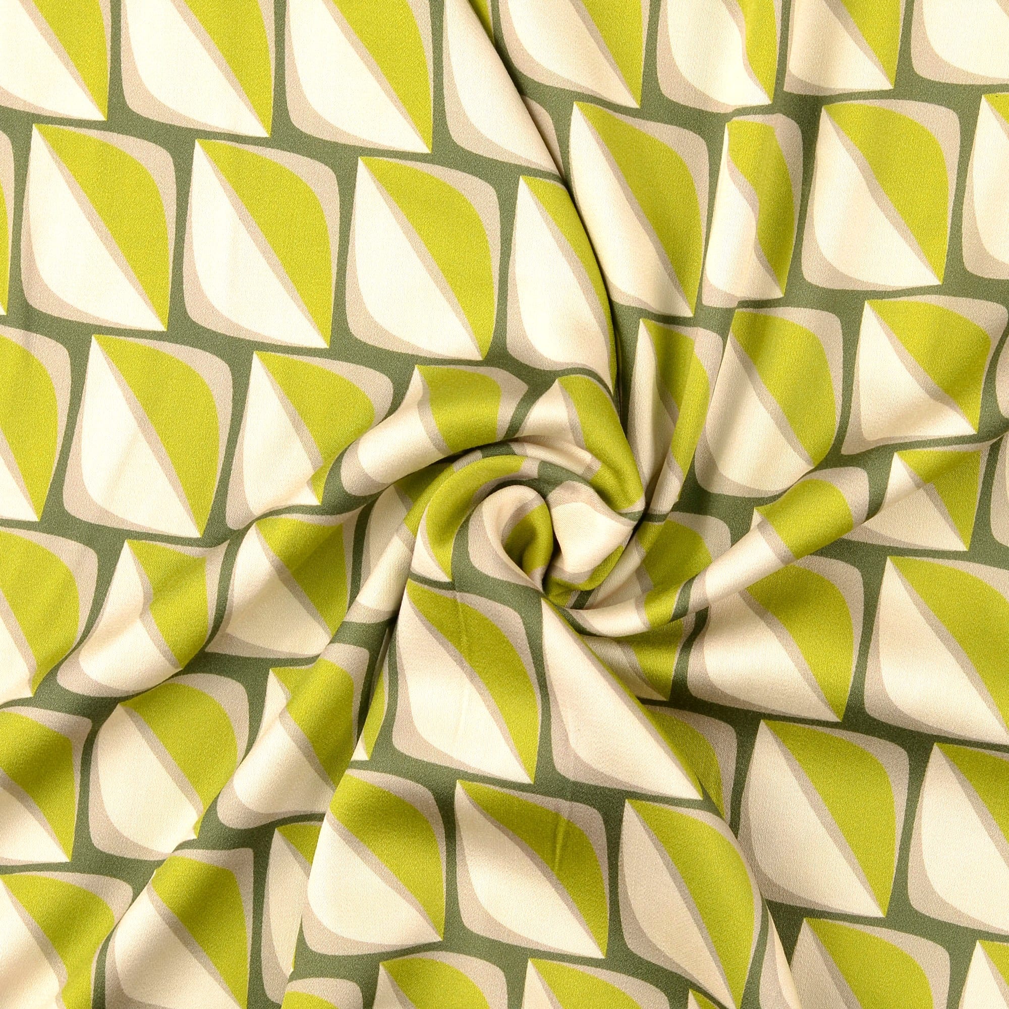 Modischer Viskosedruck, der sich ideal für Wickelkleider, Blusen, Röcke und luftige Hosen eignet.